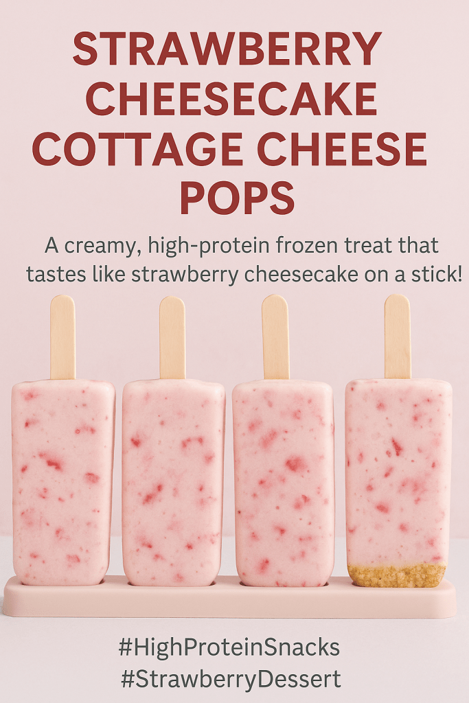 These Strawberry Cheesecake Cottage Cheese Pops are everything you want in a treatâcool, creamy, and perfectly sweet with a boost of protein from cottage cheese and a touch of vanilla protein powder. Theyâre a refreshing snack for sunny days, a satisfying post-workout treat, or even a sneaky way to get some extra protein into your kids.
